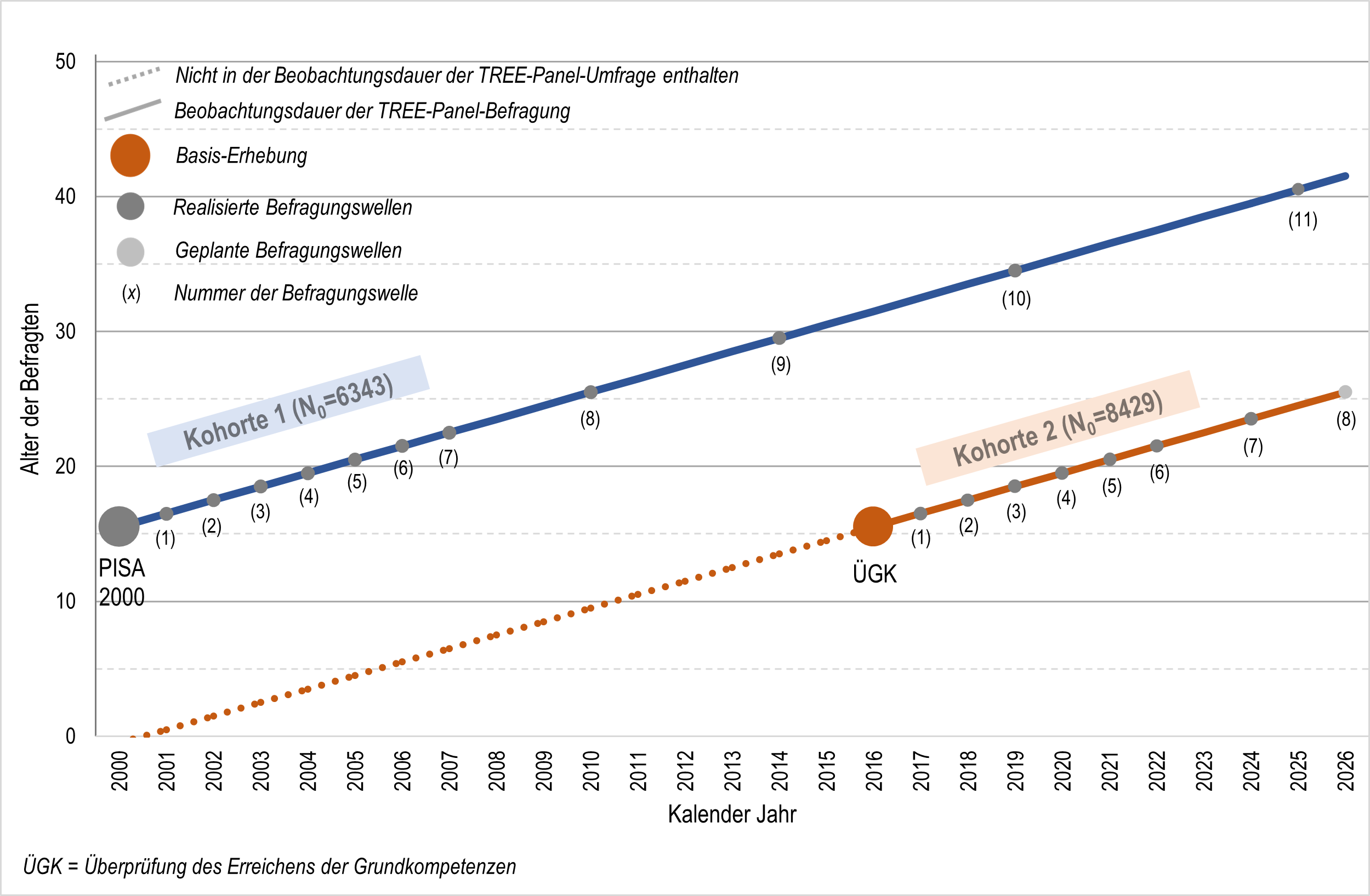 Die TREE1-Stichprobe wurde zwischen 2001 und 2020 insgesamt zehn Mal nachbefragt, das letzte Mal (2019/20) im durchschnittlichen Alter von rund 35 Jahren. Die TREE2-Stichprobe wurde zwischen 2017 und 2024 insgesamt sieben mal nachbefragt und hat inzwischen ein Durchschnittsalter von fast 25 Jahren erreicht. Die Daten beider Kohorten stehen der wissenschaftlichen Gemeinschaft als scientific use files zur Analyse zur Verfügung (siehe Rubrik "Daten"). Sie gehören zu den meist genutzten sozialwissenschaftlichen Datensätzen der Schweiz.
